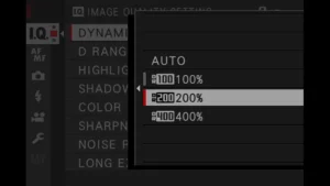Když navolíš funkci DR AUTO, tak Fujina analyzuje scénu a rozhoduje za tebe podle kontrastu scény. Vždy vybírá jen mezi: DR100% a DR200%. Pokud chceš DR400 %, tak to musíš nastavit ručně!